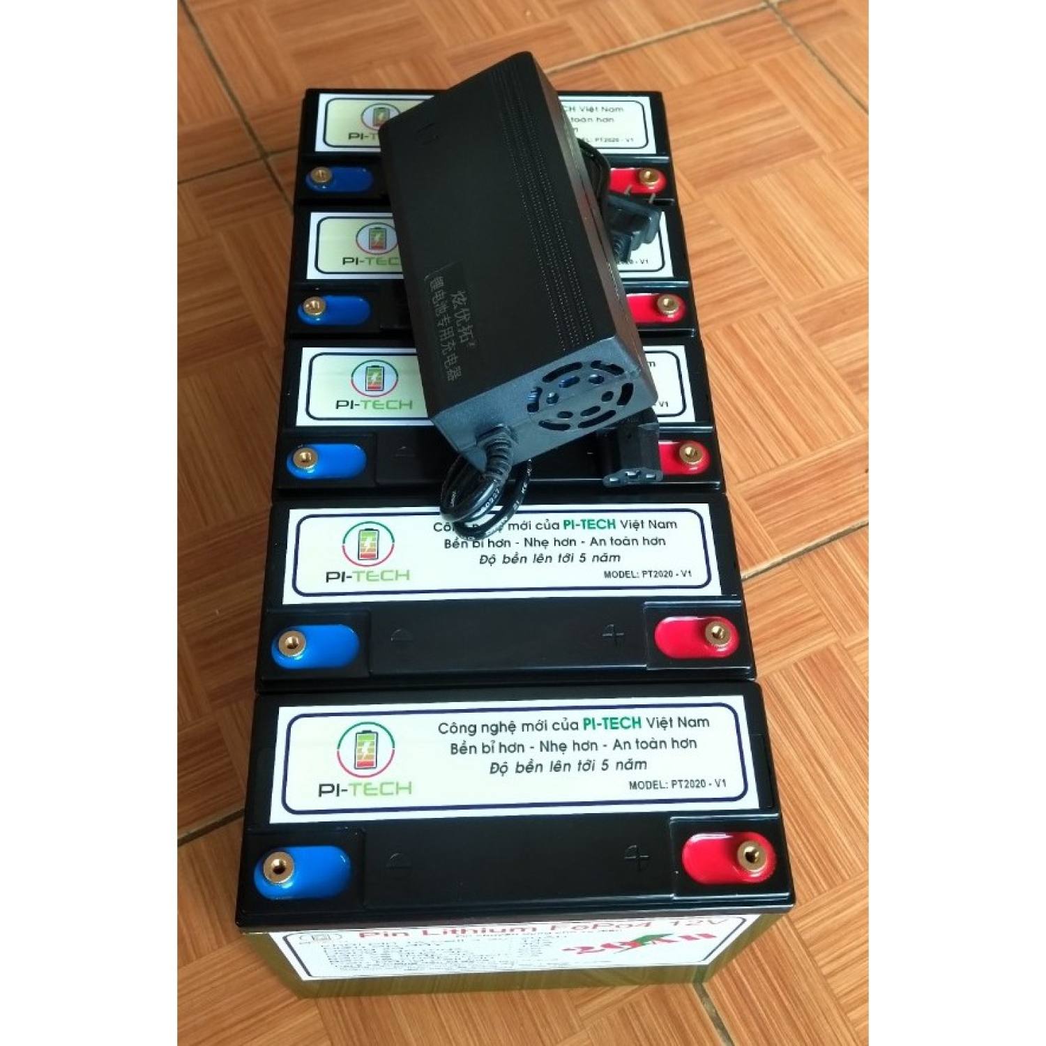 Combo 5 bình ắc quy Lithium PI-TECH chuyên dụng cho xe điện + sạc 3A
