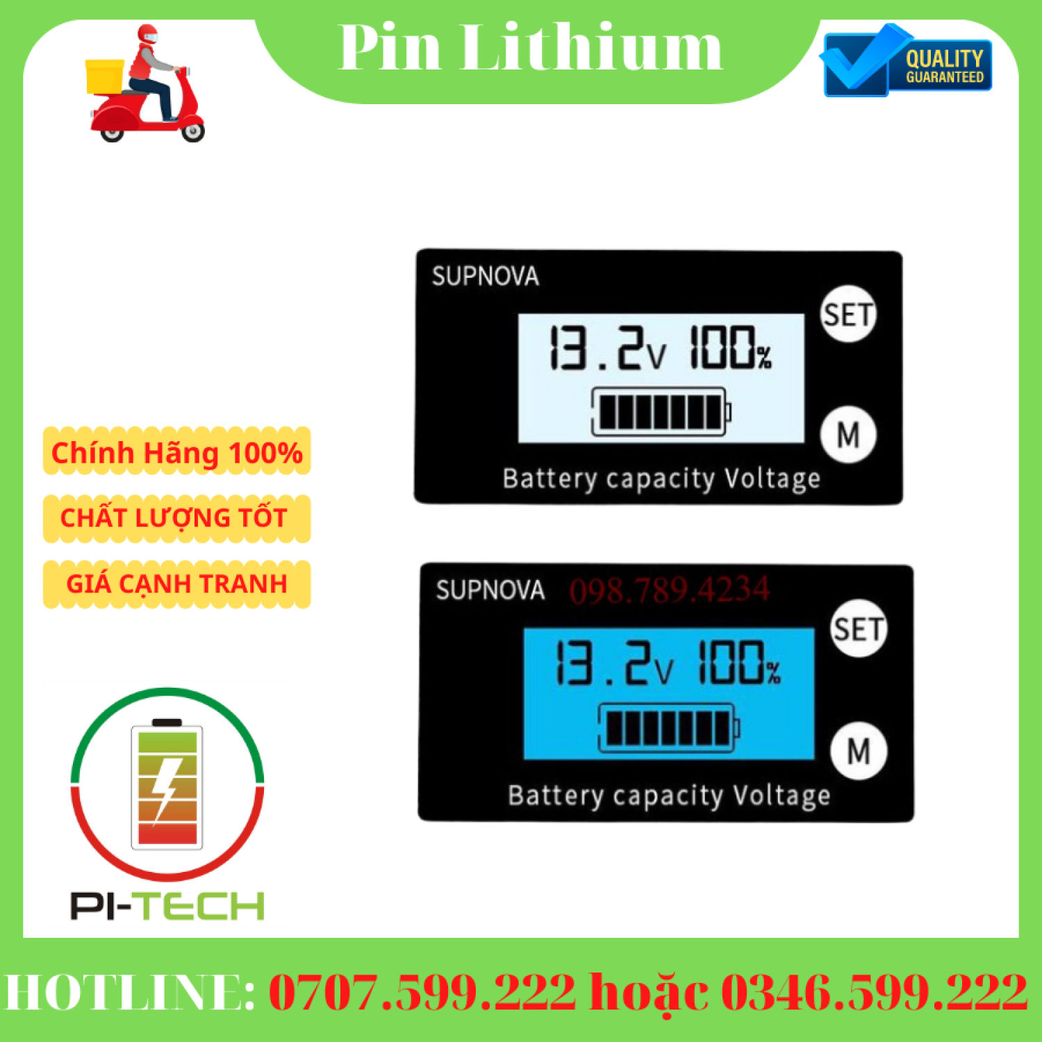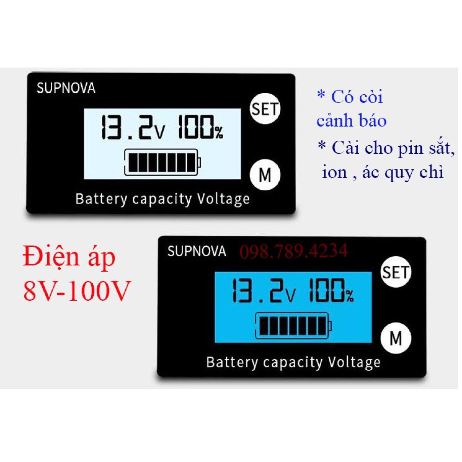 Bộ hiển thị phần trăm điện áp của pin lithium, pin ion và ác quy