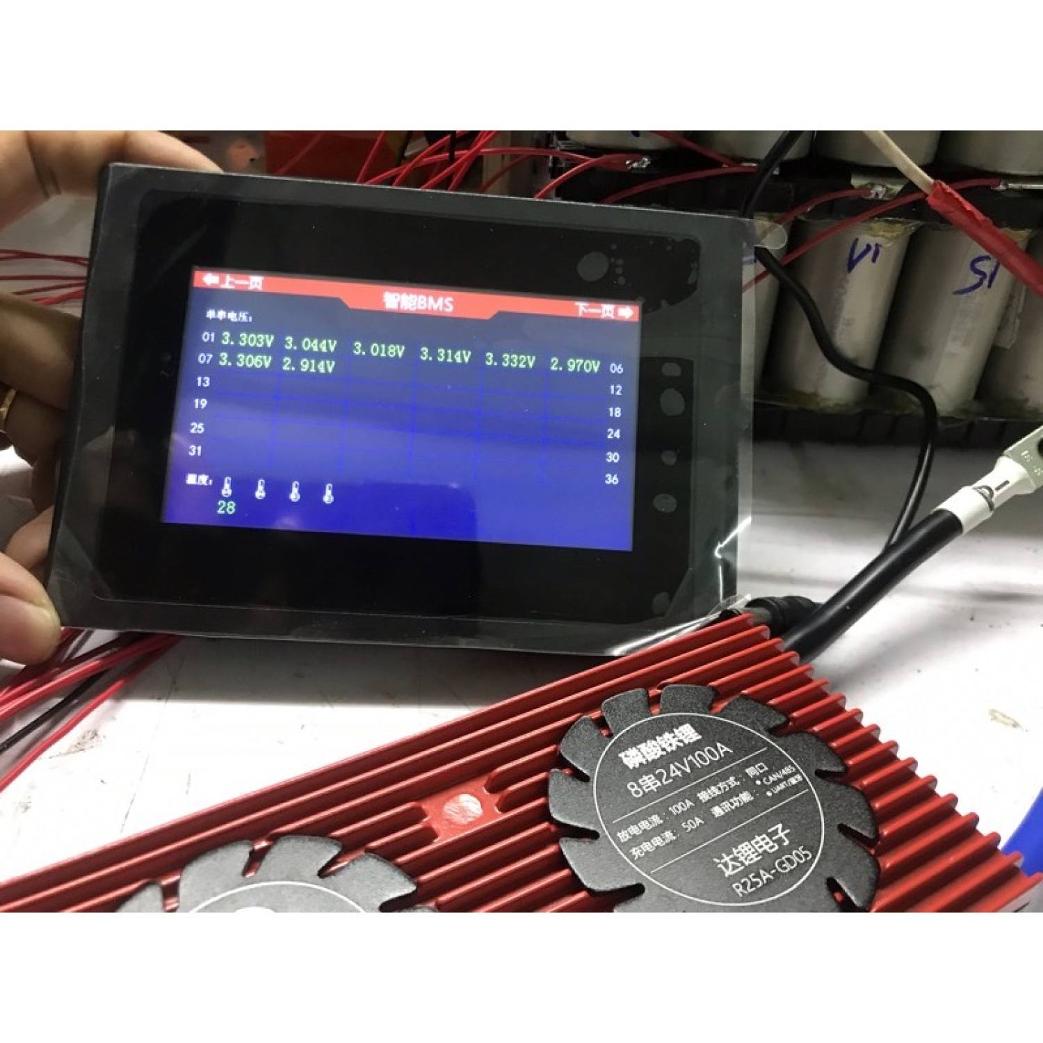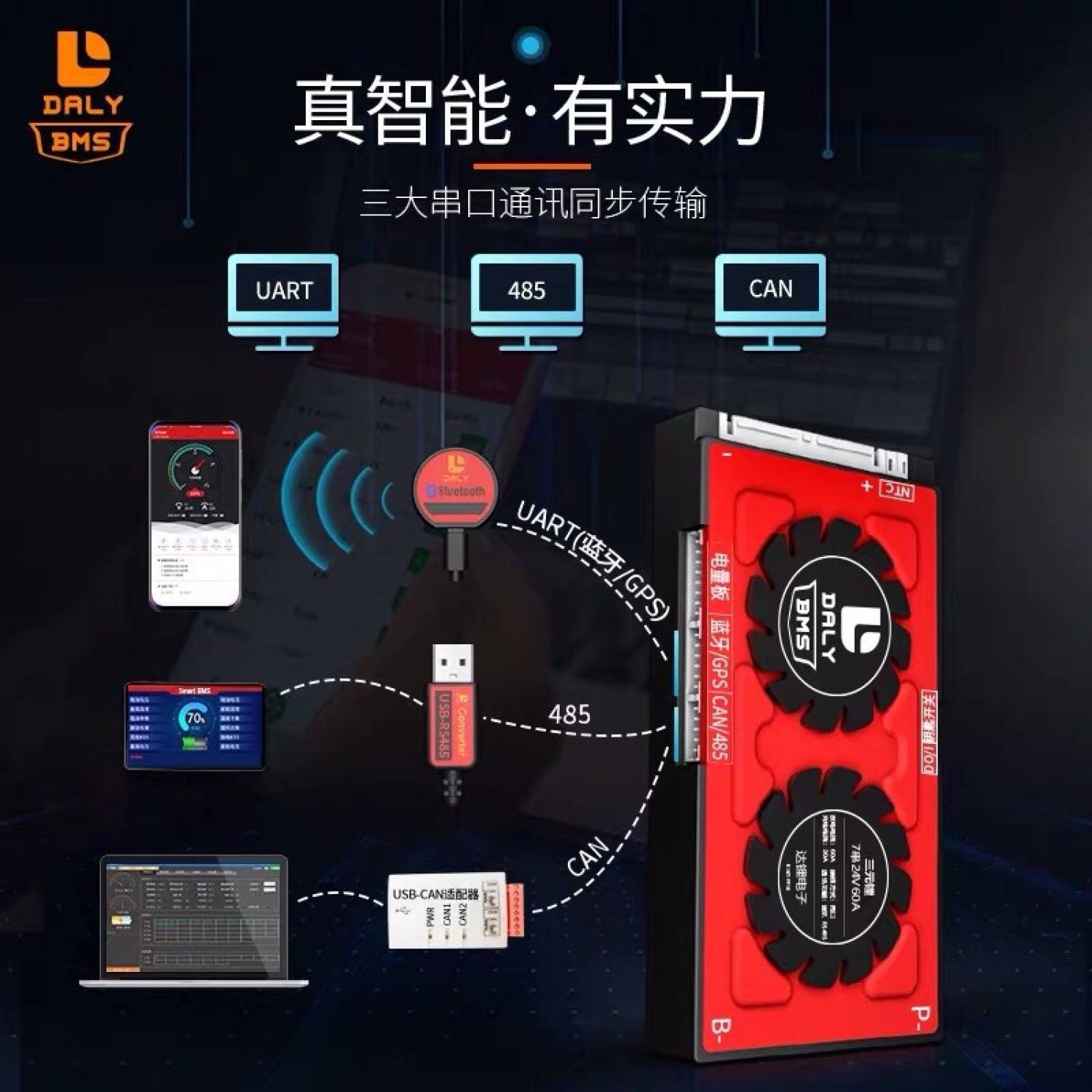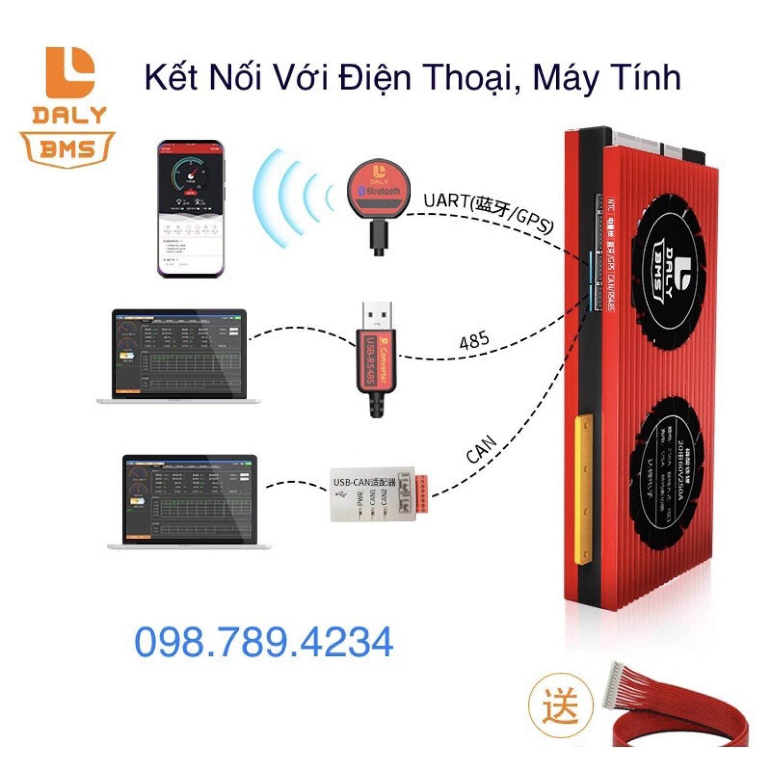 Mạch chính hãng daly có thể kết nối qua điện thoại blutooth để theo dõi từng cell pin,